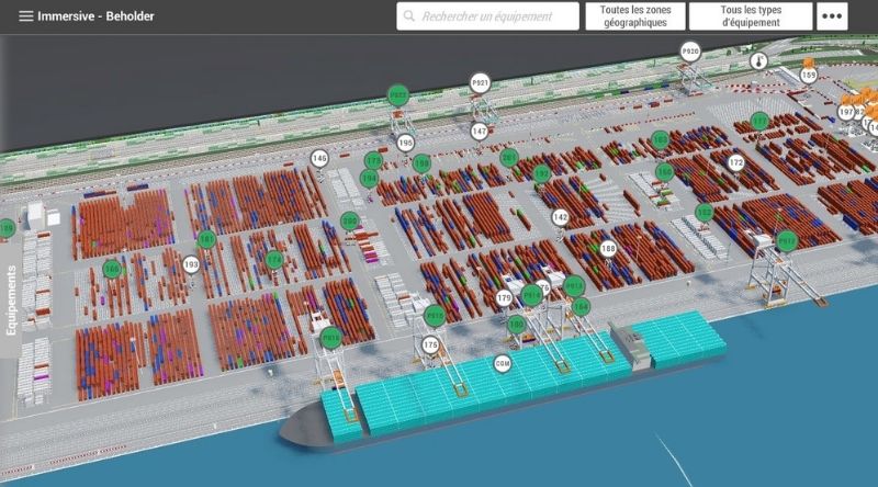 Pour appuyer ses dires, il rappelle les avantages qu’apporte ce système. En premier lieu, il permet une surveillance en temps réel des ouvrages, des engins et des infrastructures. Ensuite, il offre une visualisation et une optimisation des opérations en temps réel. Ainsi, au travers d’Immersive 360 les opérateurs suivent les déplacements des cavaliers, la mise en service des portiques, le taux d’occupation du terminal, le contrôle de passage des camions et les navires à quai. De plus, ce dispositif alerte sur les anomalies pouvant survenir au cours des opérations. « Nous pouvons ainsi réagir plus rapidement et apporter des solutions lors des opérations de manutention. Un gain d’efficacité pour éviter que les navires soient maintenus à quai en cas d’anomalie ».