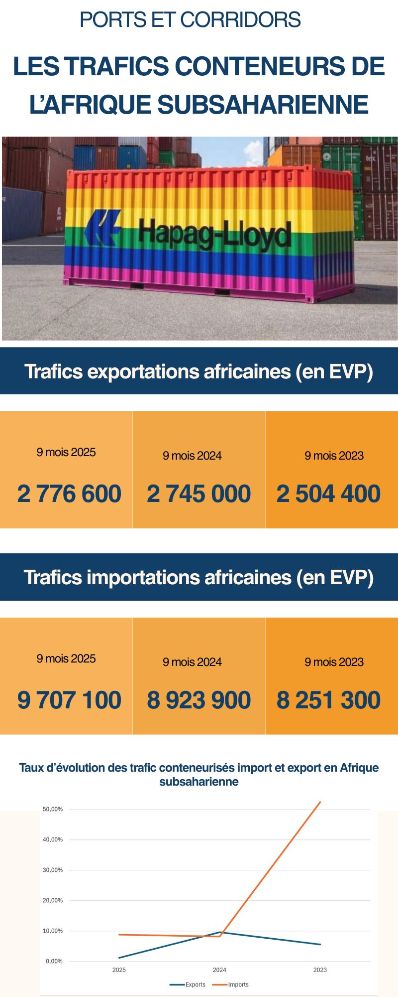 Un contexte économique qui est aujourd’hui dominé par trois armements sur l’Afrique de l’Ouest : Mærsk, CMA CGM et MSC. Les trois armements se partagent environ 70% du marché. Cependant, Hapag Lloyd veut aussi une part du lion. En 2025, le groupe estime avoir pris ses marques. « Nous avons réussi à prendre environ 7% du marché africain, assure Thomas Orting Jorgenssen. De plus, nous enregistrons une croissance de 40% de nos volumes sur la sous-région. » En Afrique de l’Est et méridionale, l’activité est plus stable ces dernières années.